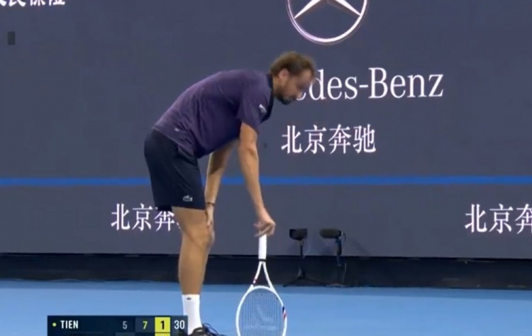 在10月1日举行的中网男单半决赛中,梅德韦杰夫面临了一场艰难的挑战。在决胜盘中,他因为小腿抽筋而无法继续移动,最终无奈退赛,这也让他遗憾地错过了决赛的机会。比赛中,梅德韦杰夫虽然付出了全部努力,但他依然收到了主裁判的警告,理由是他在场上显得不够活跃,主裁认为他缺乏竞技精神。