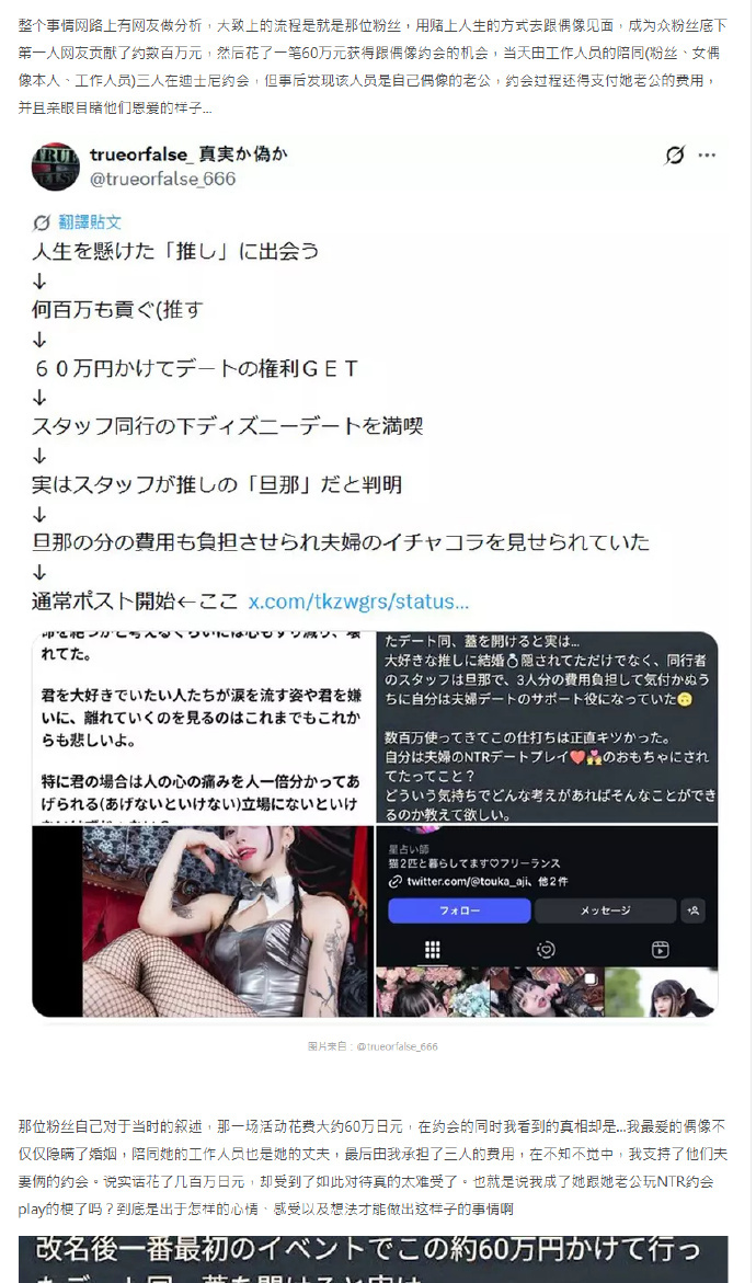 据悉,这场活动的总开销同样令人咋舌,三人的消费额达到了60万日元,也即约2.8万元人民币。这样的体验对于粉丝来说,仿佛在现实生活中演绎了一场与偶像的NTR游戏。许多人不禁感慨,这或许是对偶像文化的另一种解读与游戏。