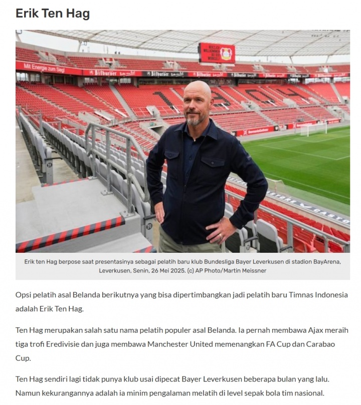 然后是埃里克·滕哈赫,他在阿贾克斯得心应手的成绩让人侧目,但在国家队的执教经历又似乎成了他的短板。这样的背景下,他是否会对印尼的足球事业翻身有斩获,真是一道令人深思的问号。